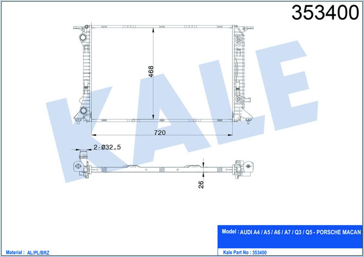 Radyatör Audı A4-A5-Q5 2.0Tfsı-1.8Tfsı-2.0T Otomatik 720X468x26 Al-Pl-Brz (KALE 353400)